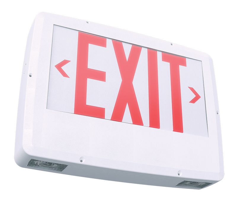 Die Cast Aluminum Contemporary LED Exit, Emergency LED, Single Face (w/Extra Face Plate for Double Face), White Housing, Red Letters, Self Diagnostics Chloride 55 Series Die Cast Aluminum LED Exit Sign ER55L3WR Die Cast Aluminum Contemporary LED Exit, Emergency LED, Single Face (w/Extra Face Plate for Double Face), White Housing, Red Letters, Self Diagnostics   N/A Exit/Emergency - Exit Signs